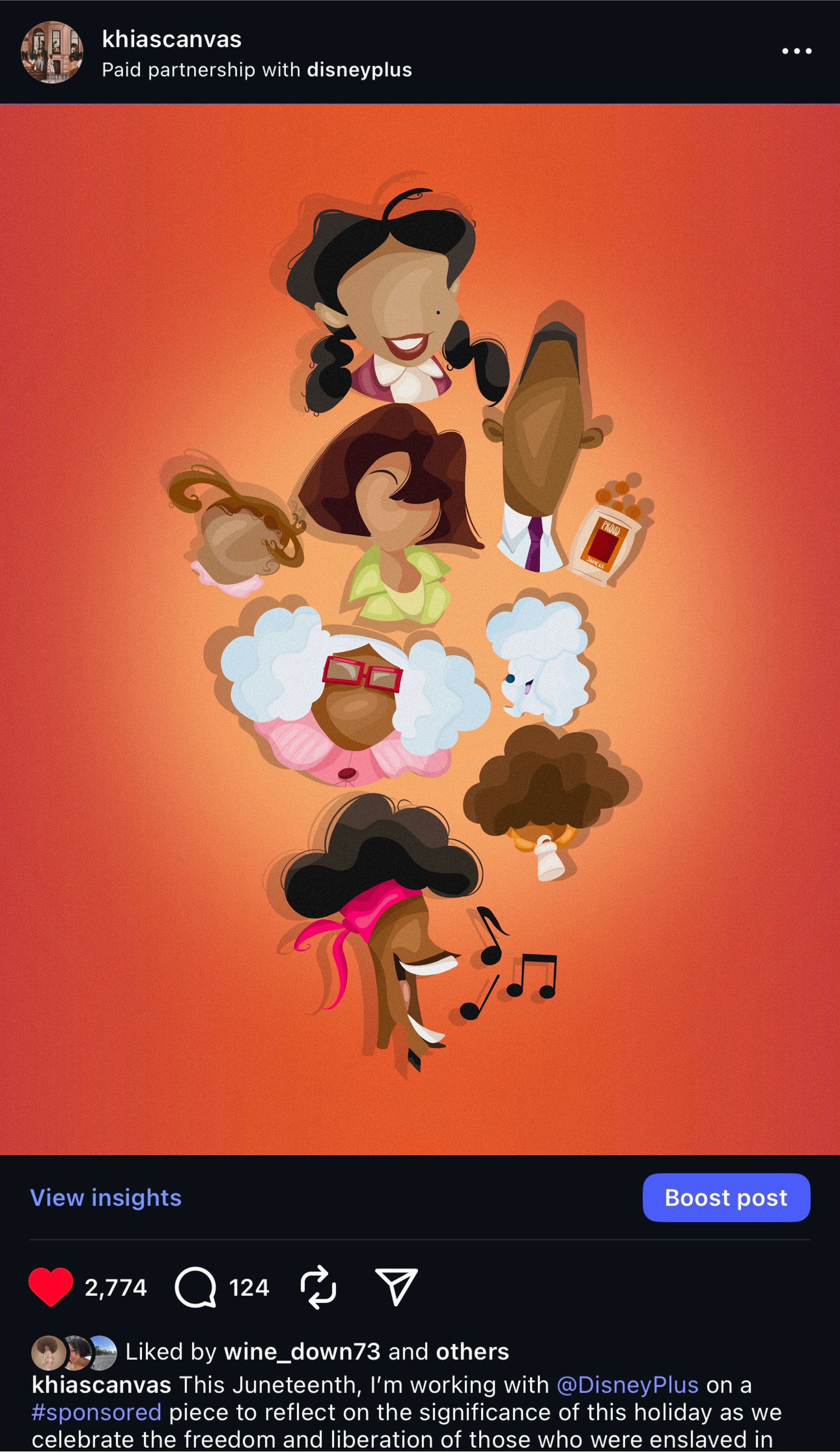 For Juneteenth and Black History Month, I created a series of illustrations reimagining notable Black Disney characters through my own artistic style. The project celebrated culture and representation, honoring the legacy of these characters while presenting them in a fresh, contemporary way.